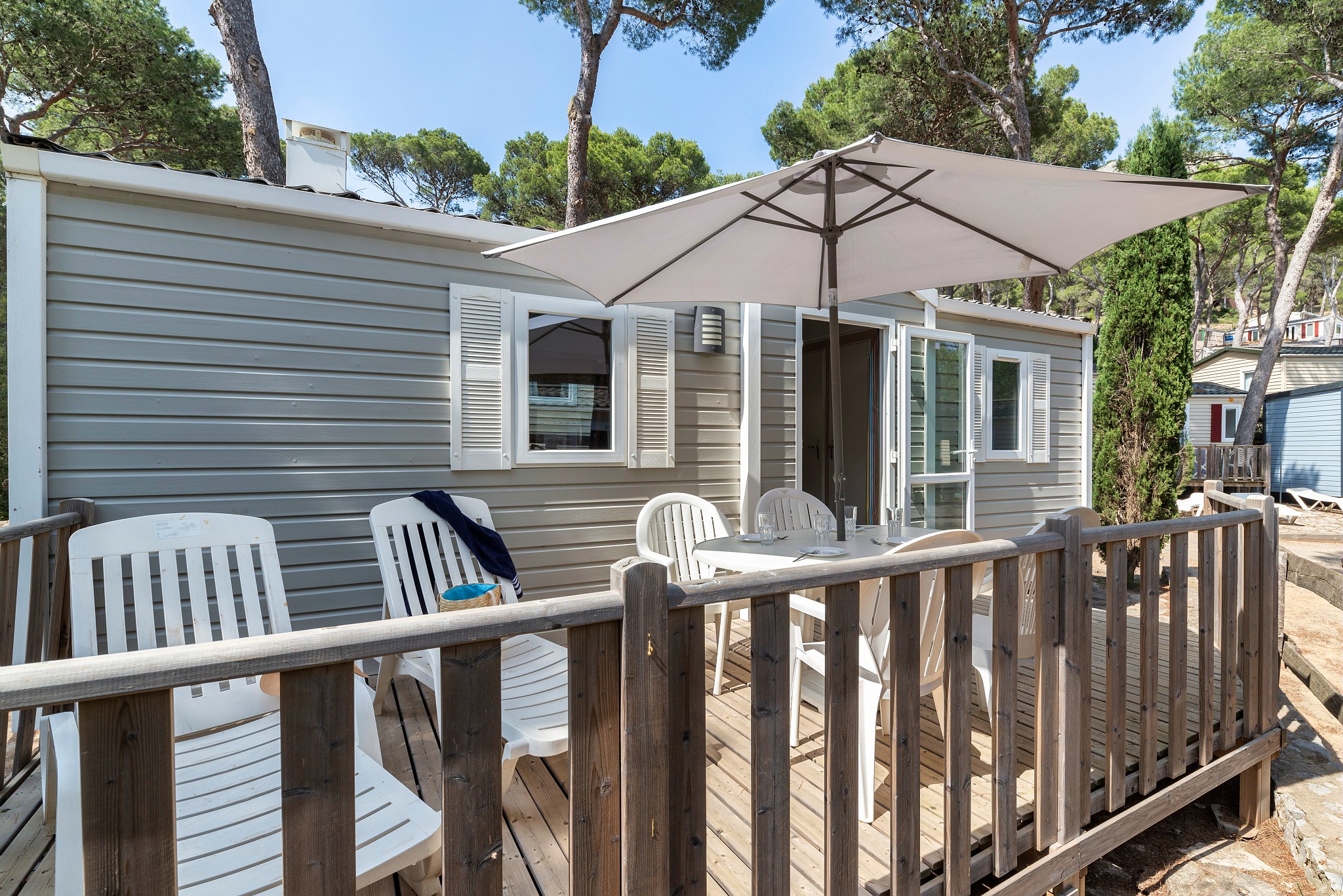 - Træterrasse, med parasol