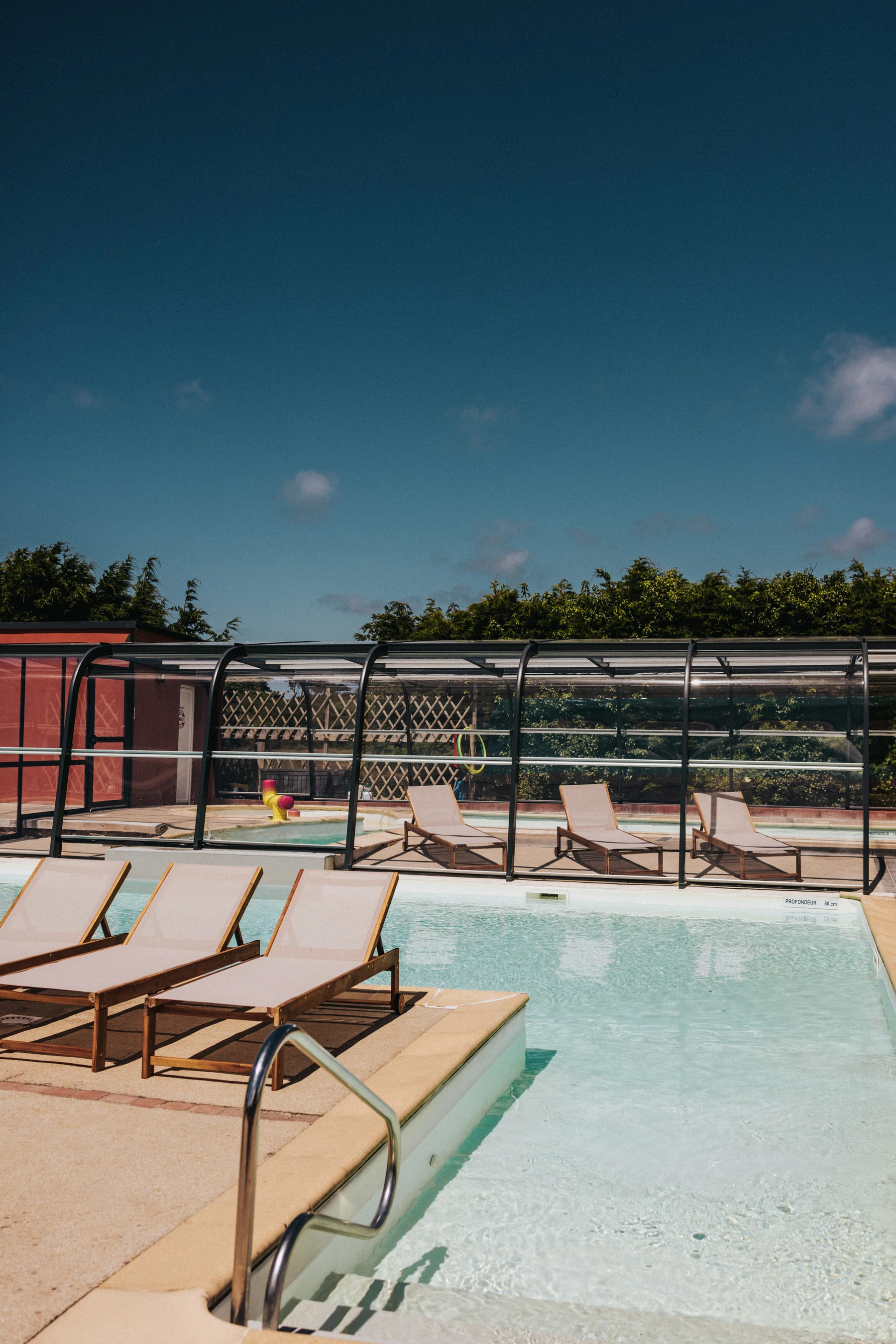 På campingpladsen finder du ikke mindre end tre swimmingpools! Der er en opvarmet indendørs pool, hvor du kan svømme selv på køligere dage. Ideel til de små, som gerne vil plaske rundt uden at fryse i vinden. Udenfor er der to swimmingpools, hvor både store og små hygger sig – masser af tid til at hoppe, svømme baner eller bare slikke sol.