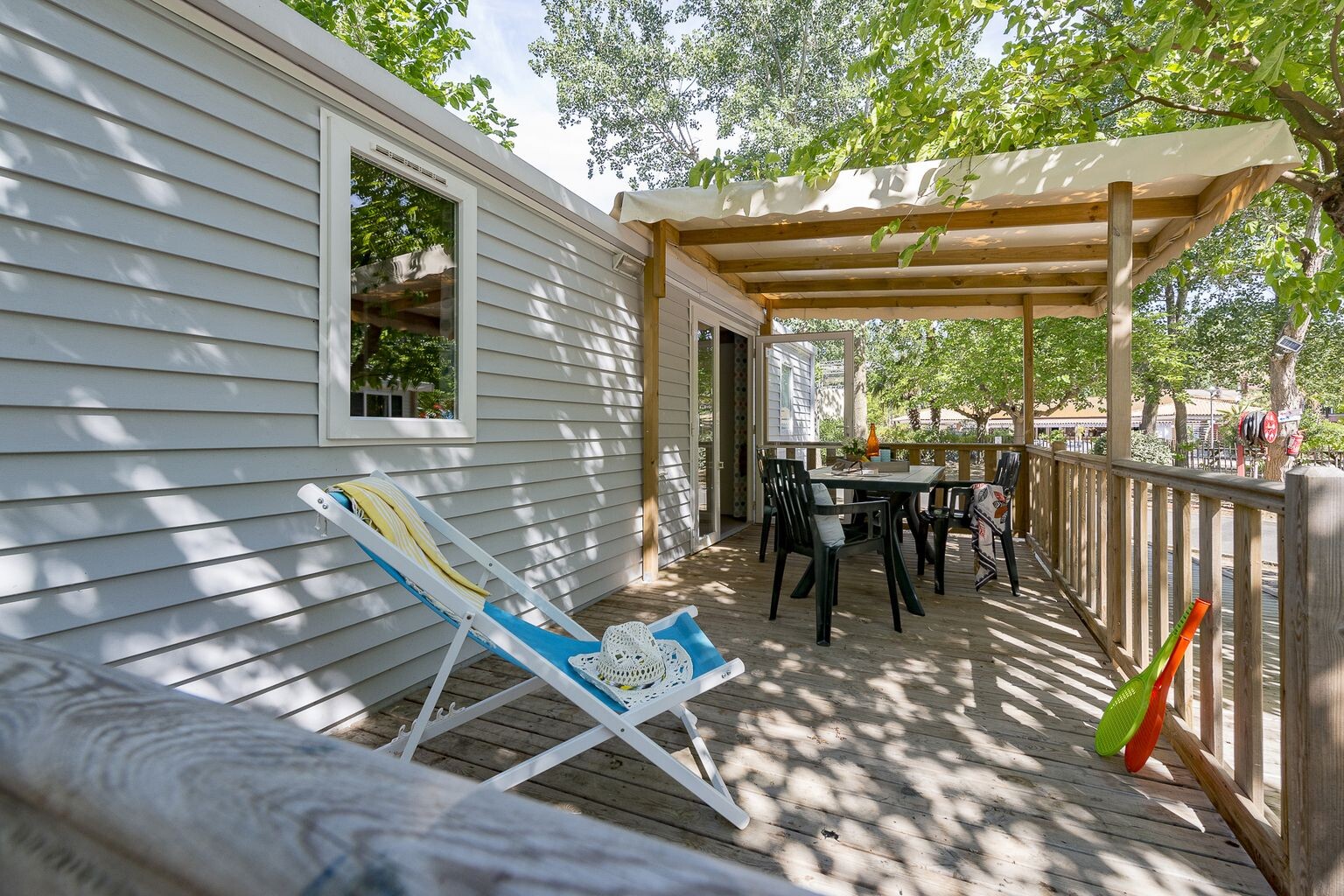 - træterrasse, fuldt overdækket