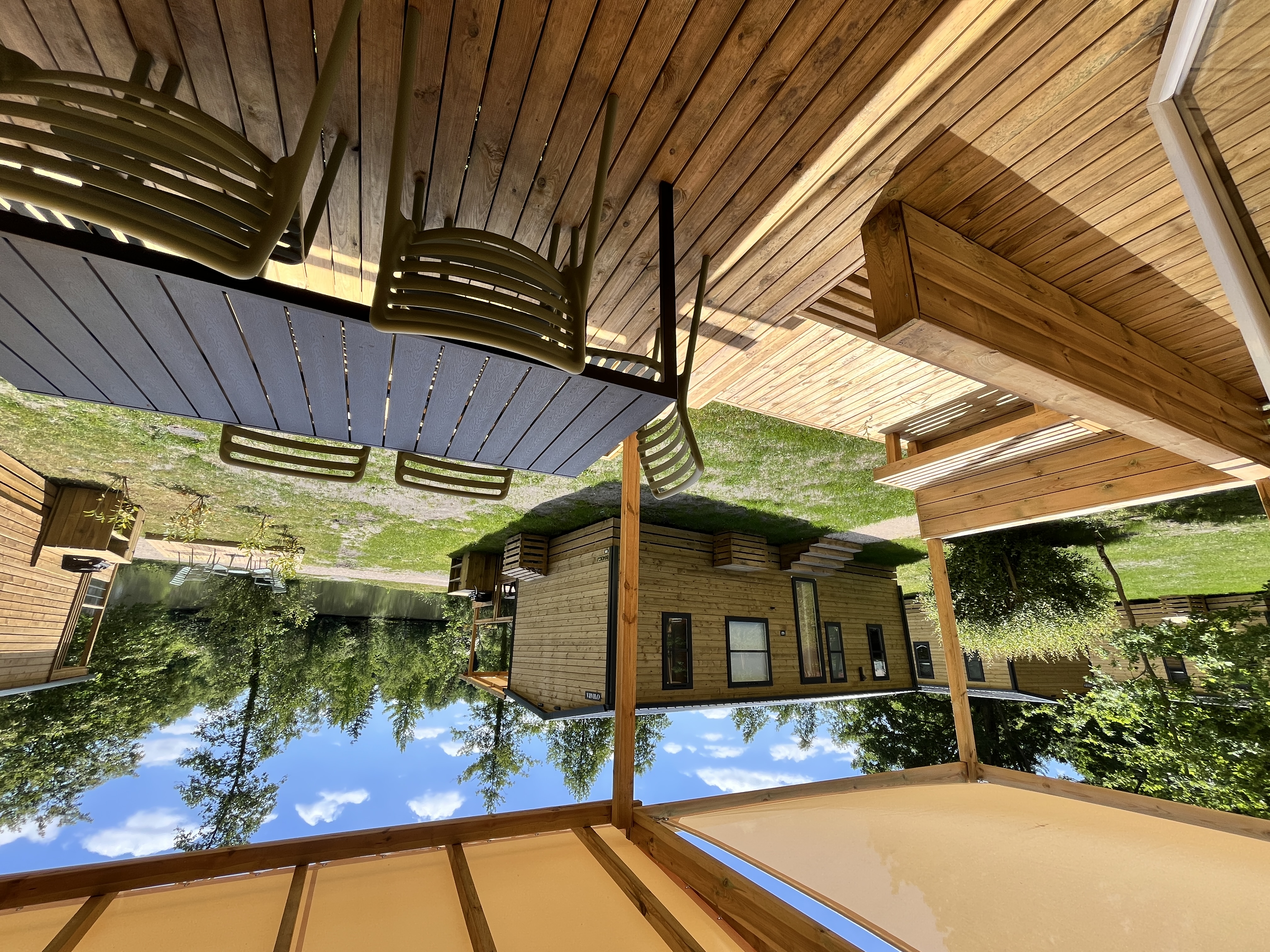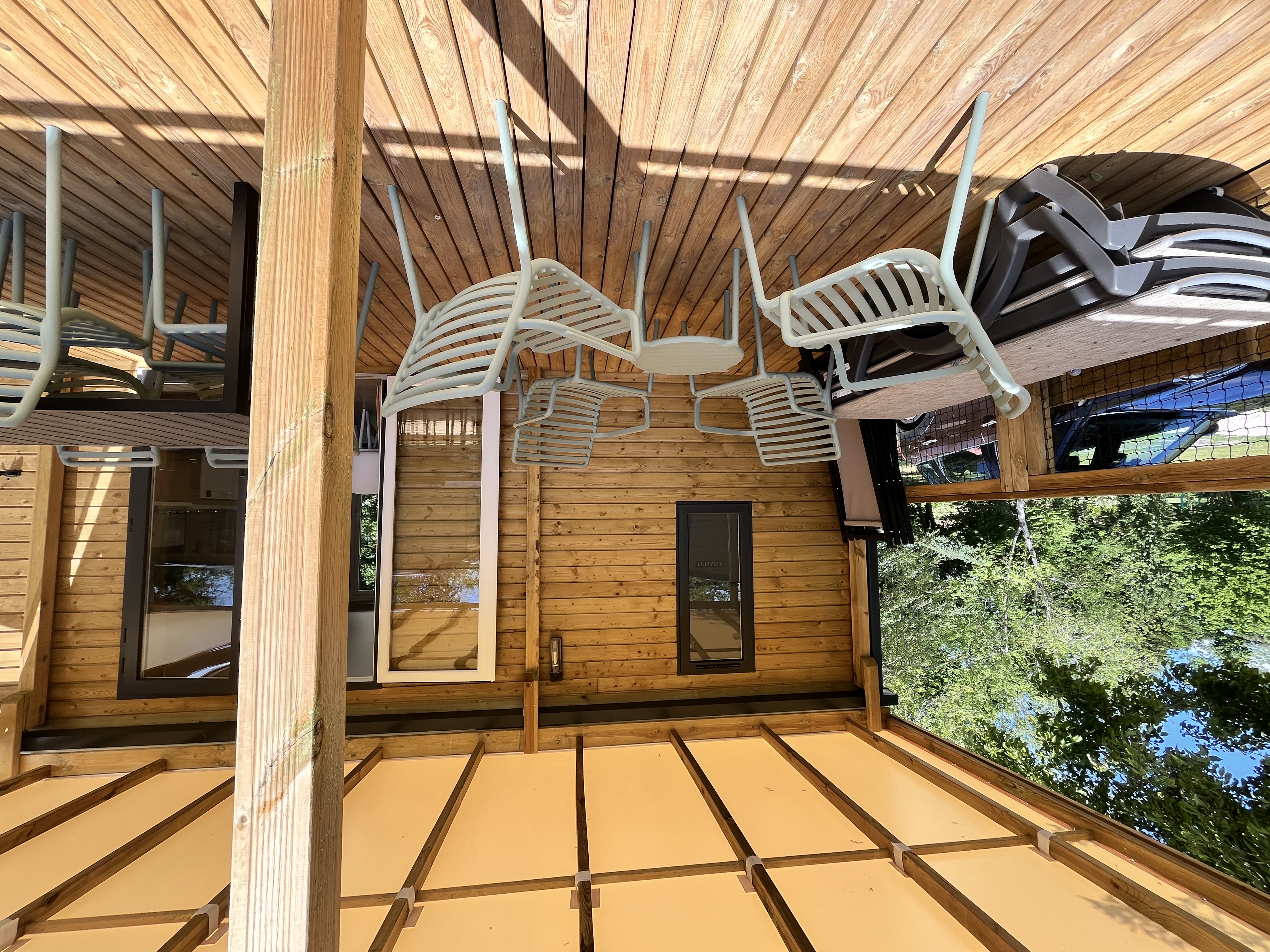 - træterrasse, delvis overdækket