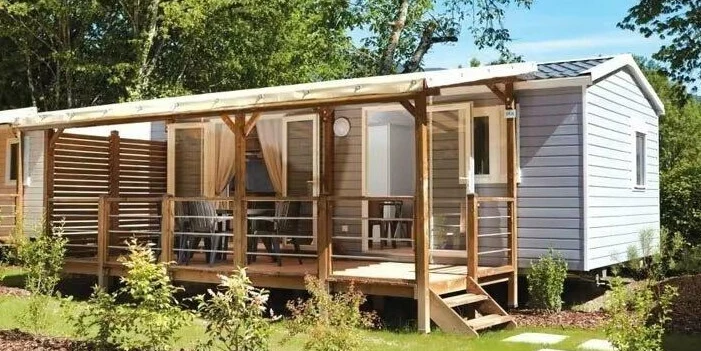 - træterrasse, med markise