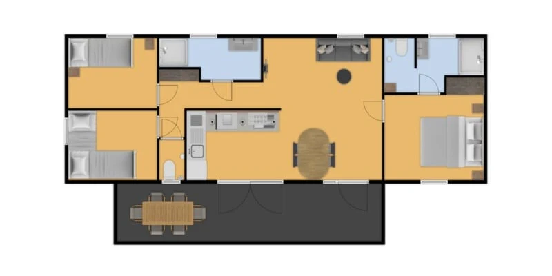 - træterrasse, med markise