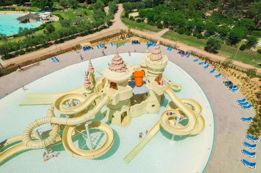 Blandt palmer og pyntesten finder I pladsens flotte poolkompleks. Det består af et soppebassin og en stor lagune. I poolområdet findes der også et afslappende jacuzziområde og en lang vandrutsjebane. Det er muligt at hente forfriskninger i poolbaren, hvor man både kan få iskolde drikkevarer og snacks. Blot 4 kilometer fra pladsen er der adgang til en god strand med lækkert badevand, hvis I ønsker at veksle mellem pool og strand.
