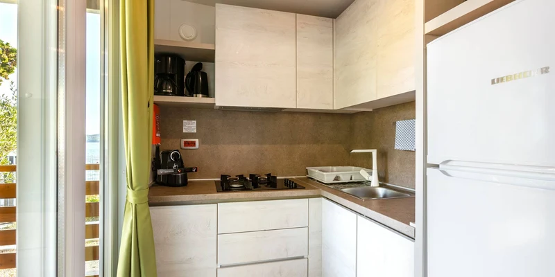 Stranden ved campingpladsen har både skygge fra pinjetræerne, men også solrige spots i gruset, hvor I kan sole jer og tage en kølende dukkert herefter. Stranden er ikke så bred, men vandet er skønt både at bade i, og så kan I tage dykkerbrillerne på og se, hvad der gemmer sig under vandoverfladen.