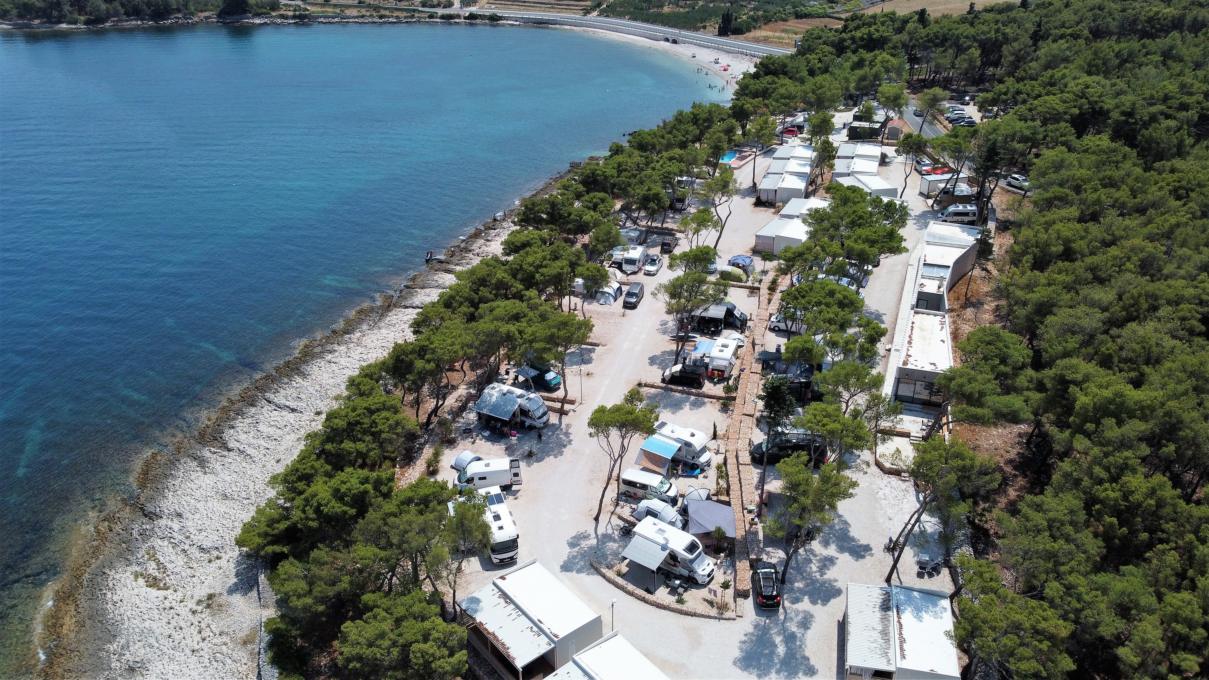 På Boutique Camping Bunja finder I et hyggeligt poolområde hvor en 30 kvadratmeter ferskvandspool er klar til at køle jer af, når temperaturene bliver for høje. For at komme til stranden skal I blot 10 meter fra campingpladsen. Her venter en dejlig strand hvor I kan bade i Adriaterhavet. På stranden kan I leje parasoller og liggestole og der er gode omklædningsfaciliteter på stranden. Om morgenen kan I nyde den smukke udsigt af solopgangen på stranden. Om aftenen kan I gå en tur og beundre den stjerneklare aftenhimmel og udsigten til fastlandet.