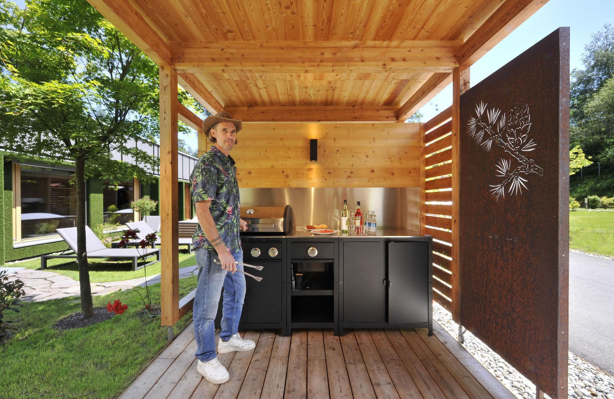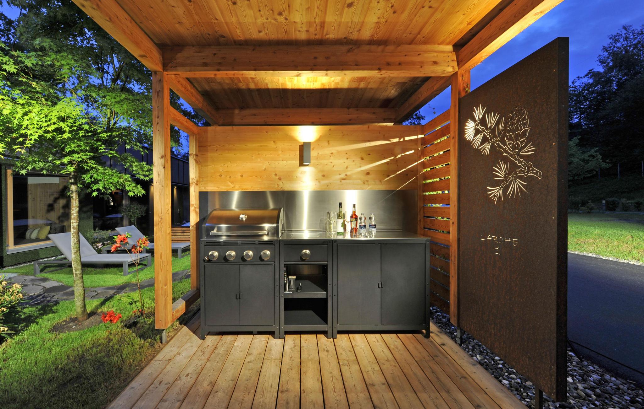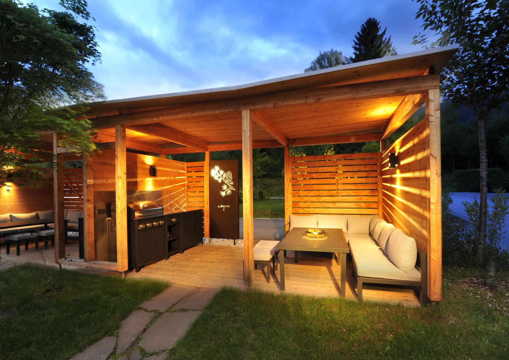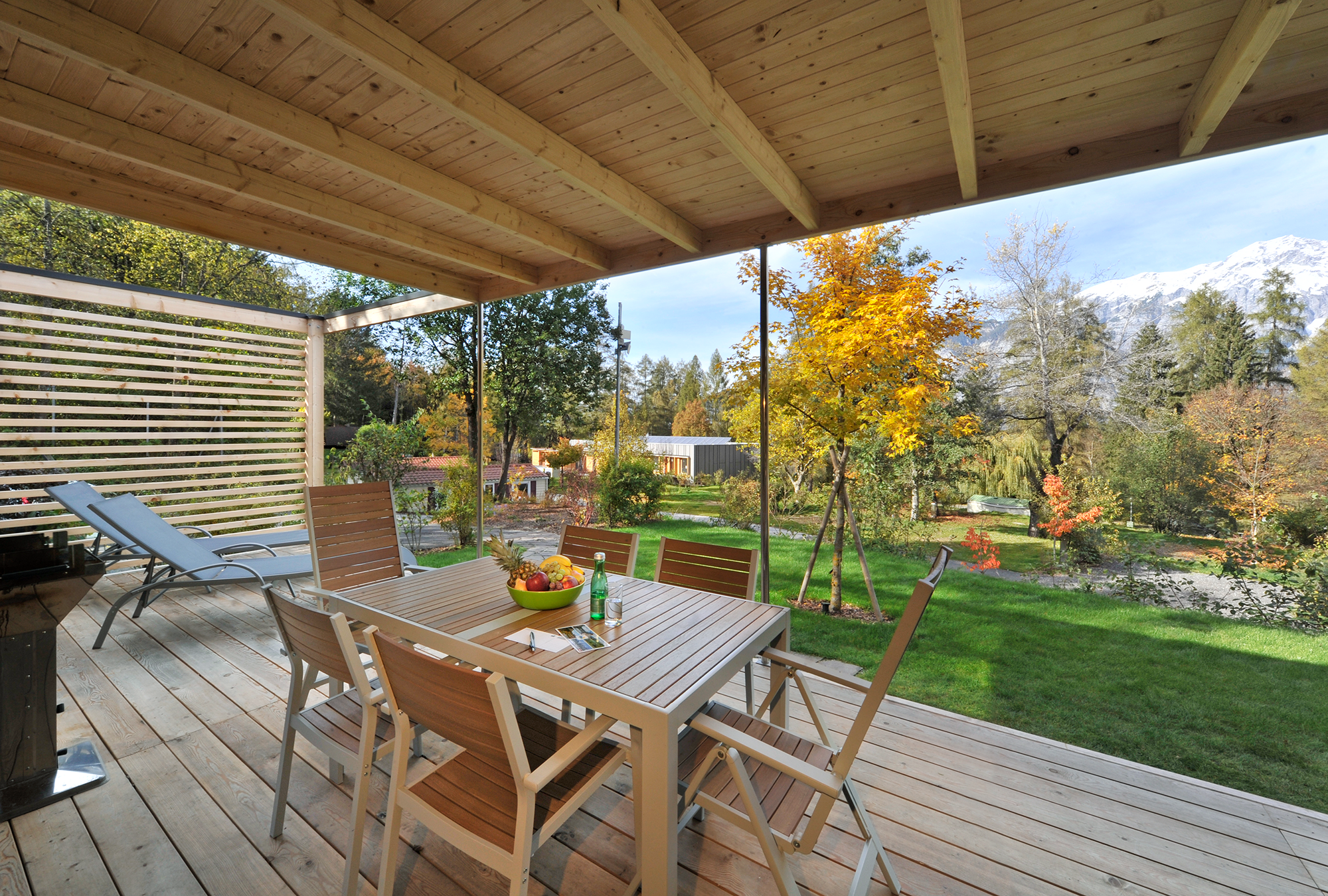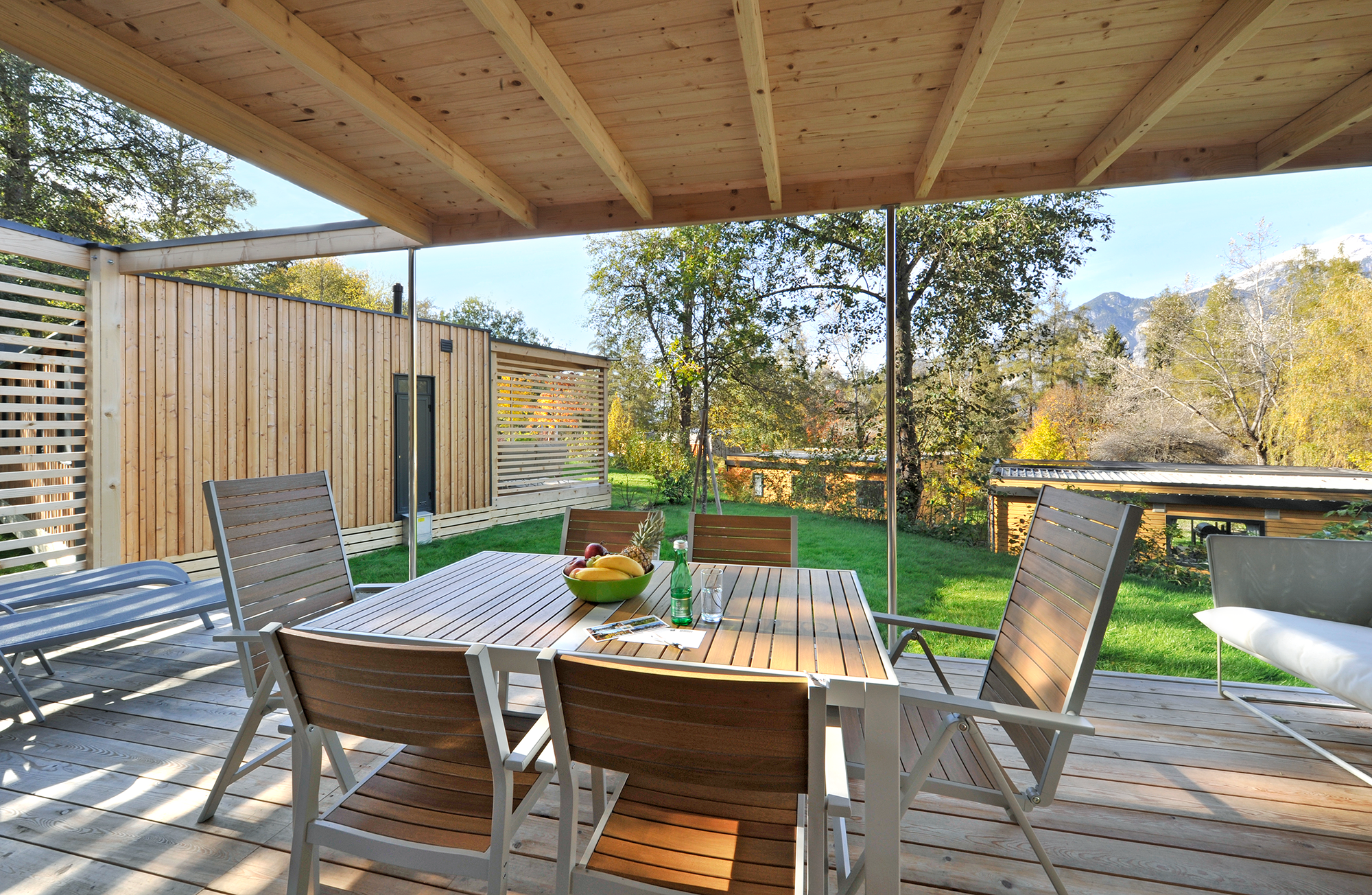 - træterrasse, delvis overdækket
