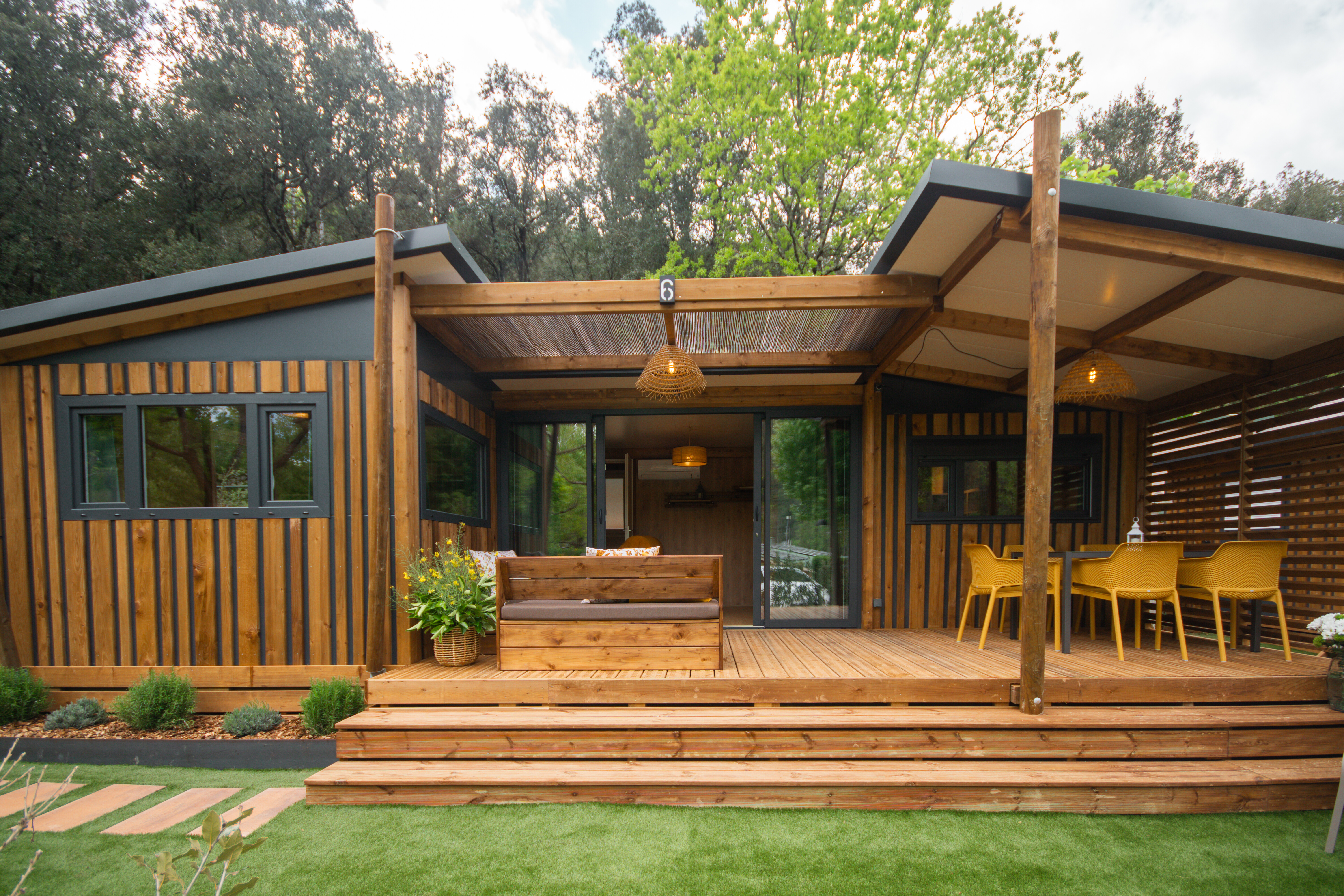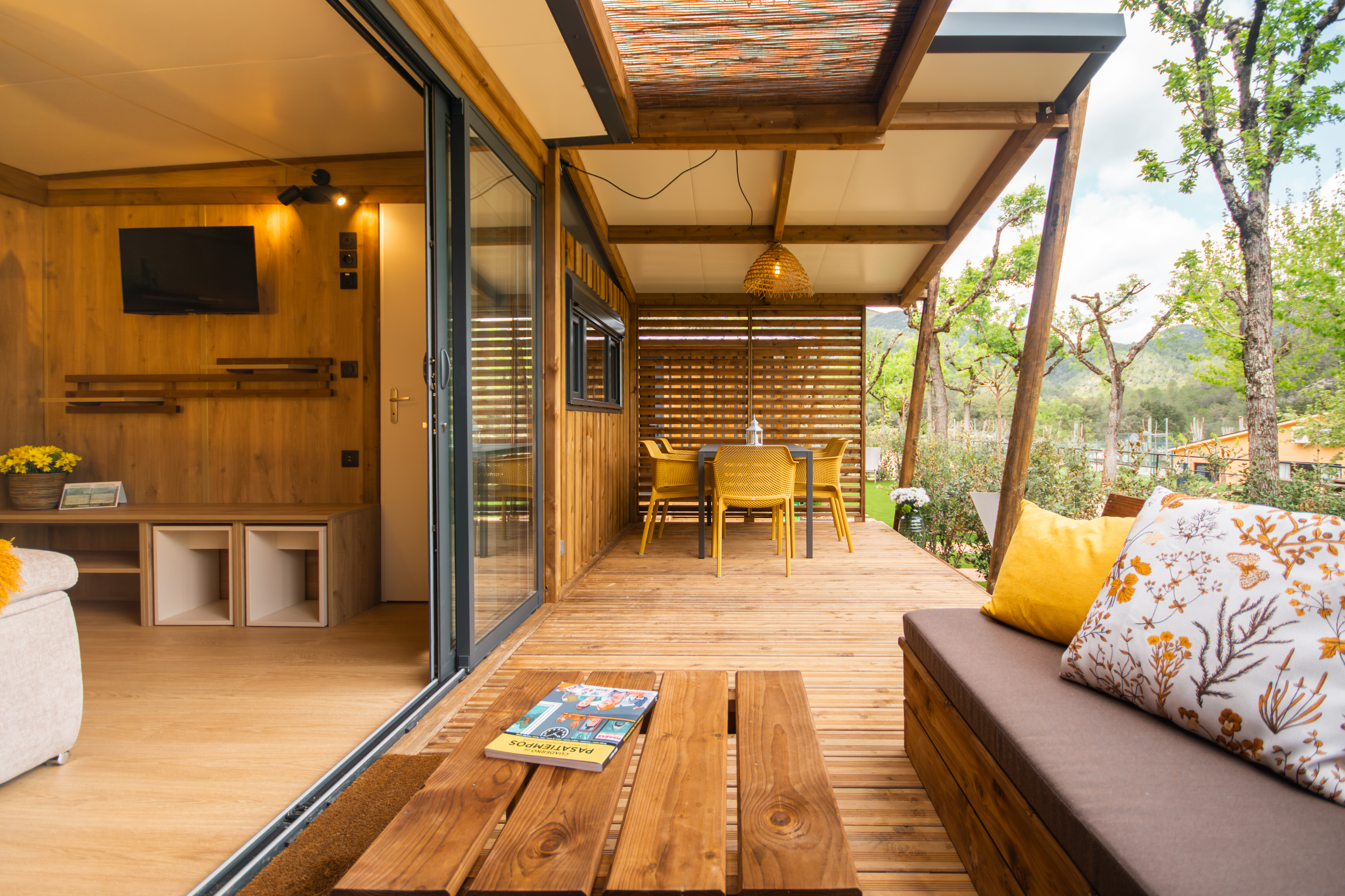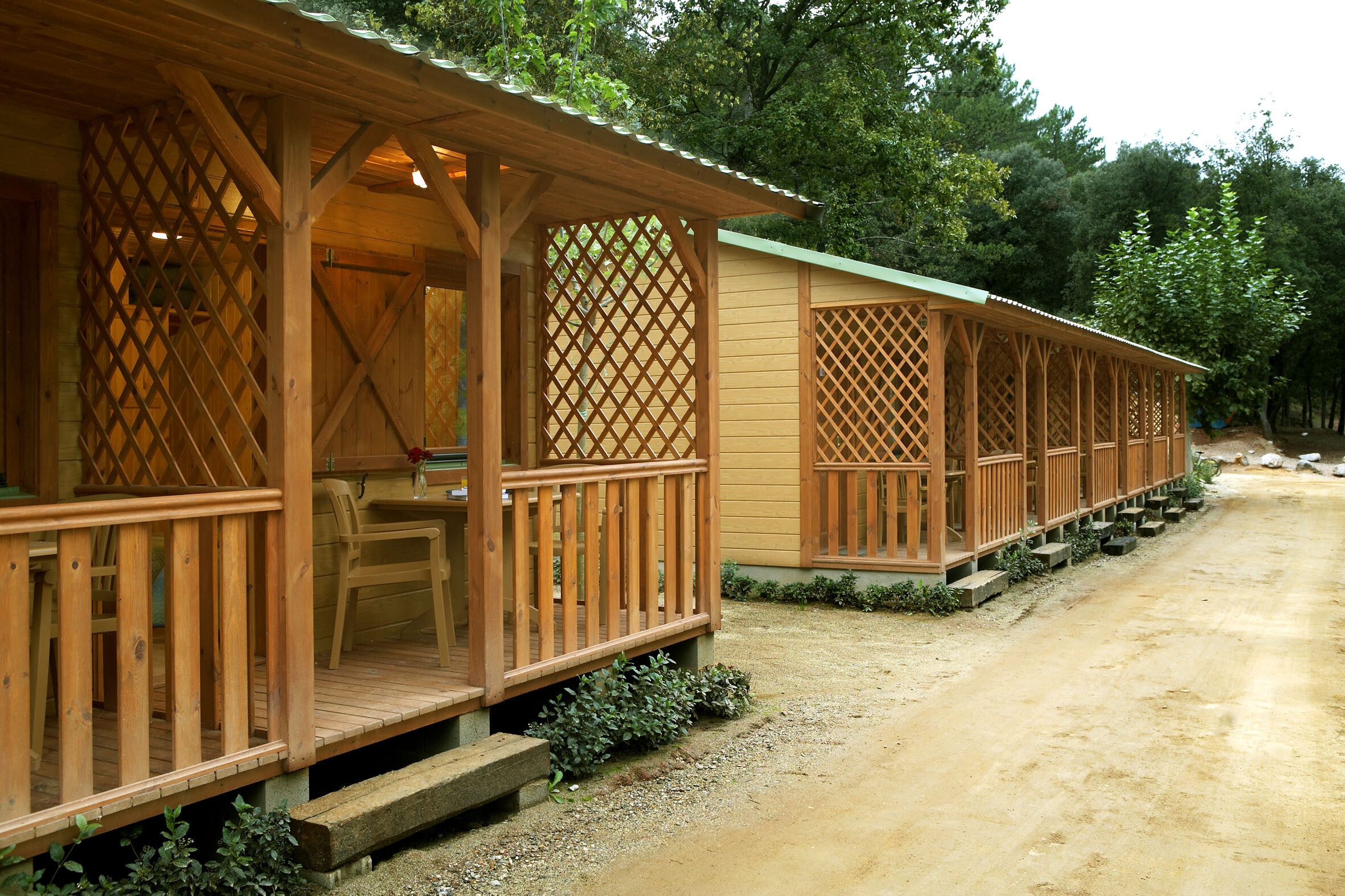 - træterrasse, fuldt overdækket