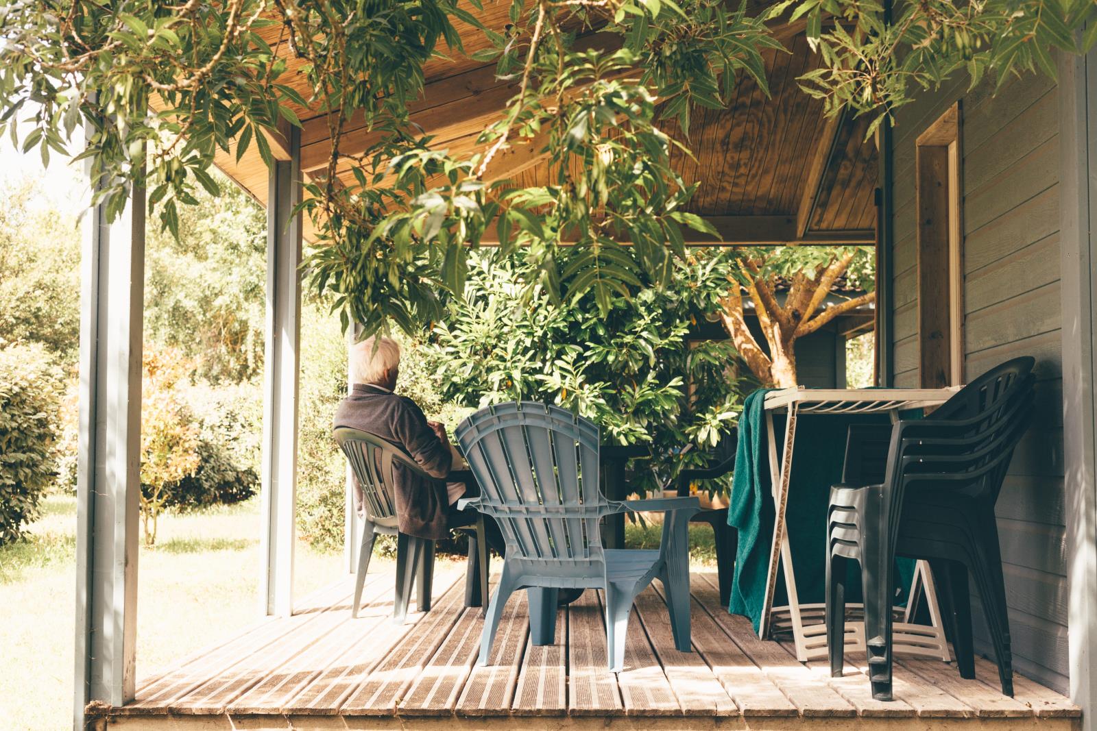 - træterrasse, fuldt overdækket