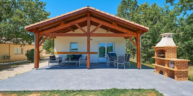 - træterrasse, fuldt overdækket