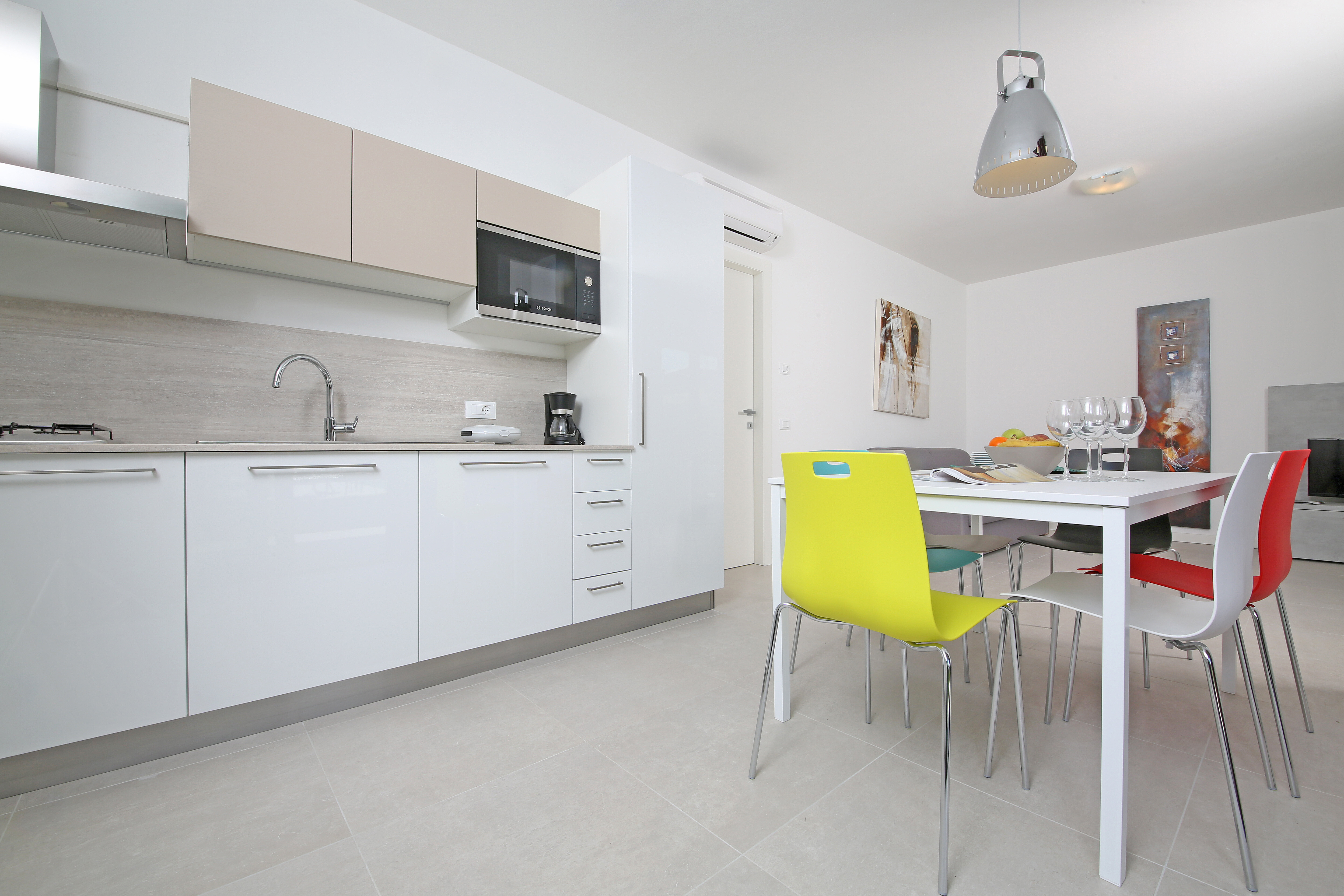 Villa T14 føles som at komme hjem, men med italiensk flair. Atmosfæren i ferieparken er venlig og afslappet. Børnene kan lege trygt i den fælles have eller tage en dukkert i poolen, mens du nyder en kaffe i skyggen af et oliventræ. Om aftenen kan du gå til en af de nærliggende restauranter eller barer uden at skulle tage bilen. Og bilen? Den er sikkert parkeret i garagen under villaen.