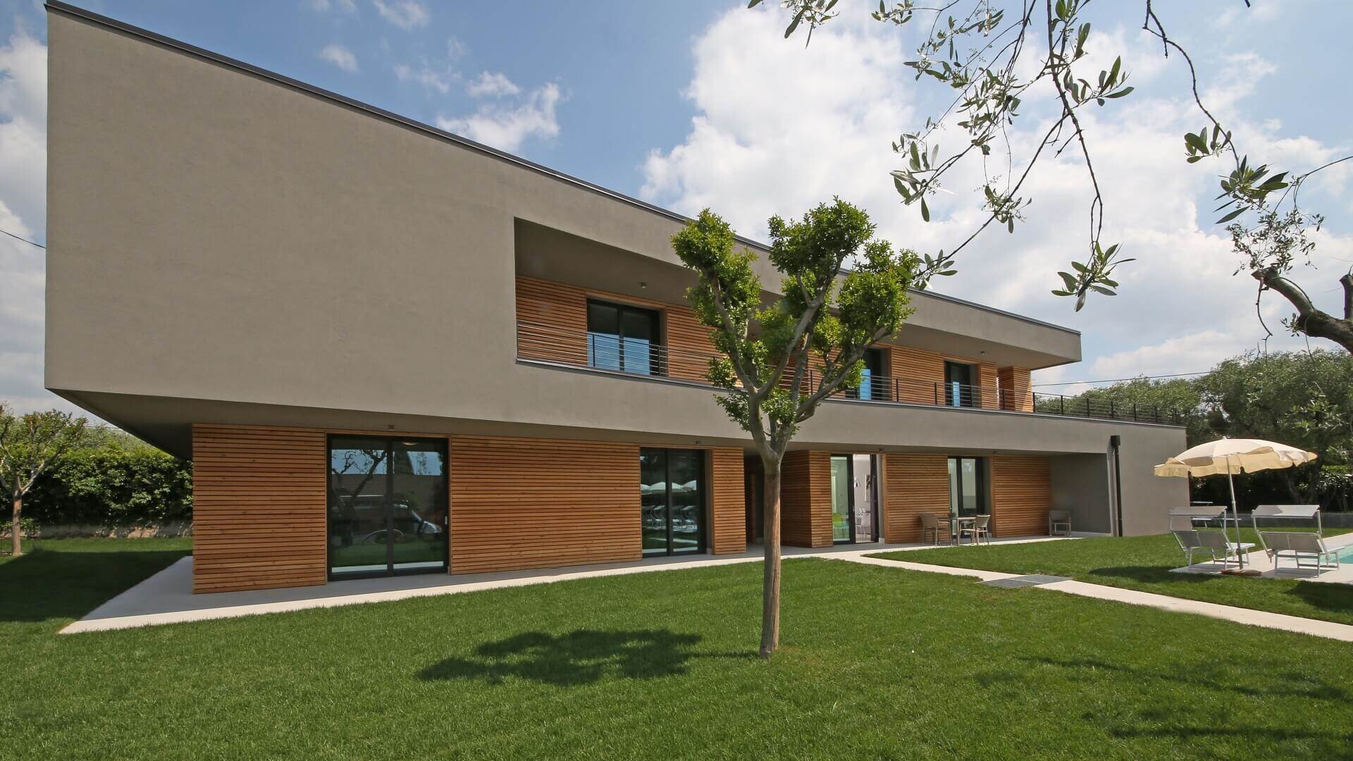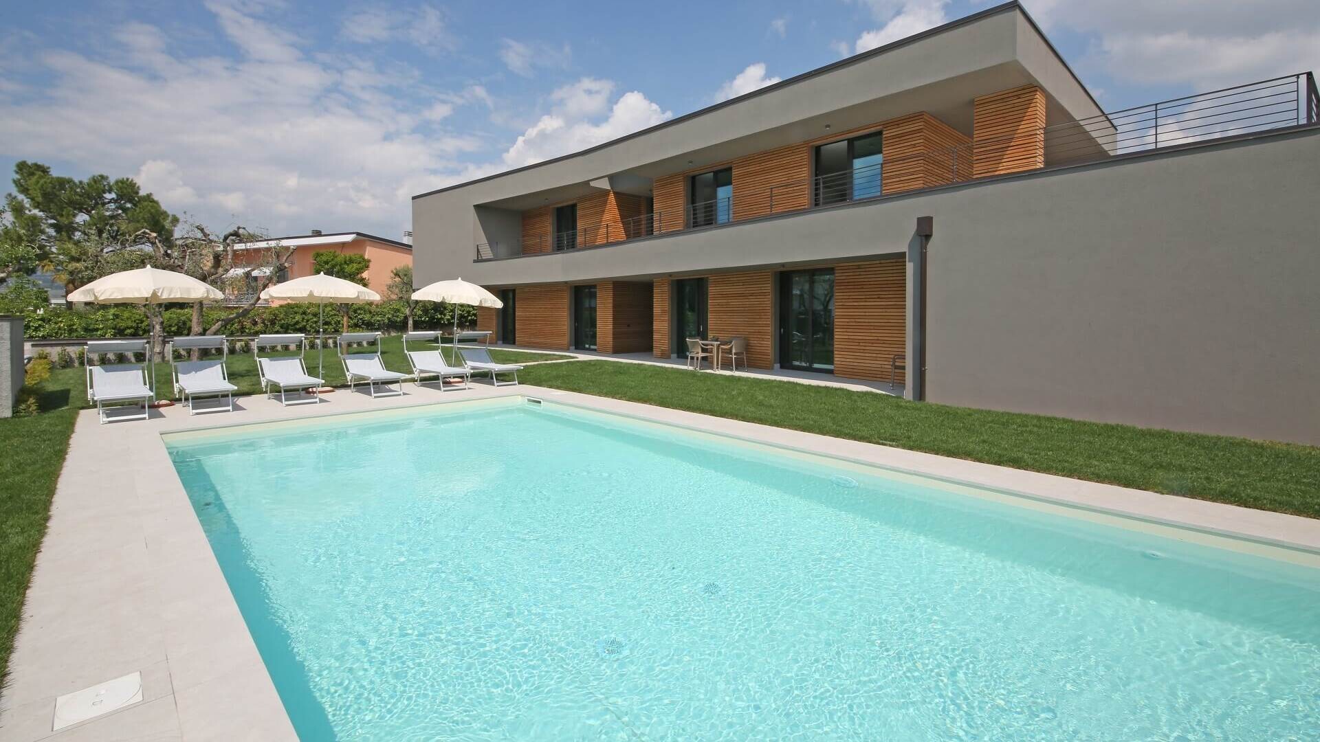 Haven til Villa T14 er et dejligt sted at slappe af ved poolen. Der er liggestole og parasoller hele vejen rundt, så du kan tilbringe timer her med en god bog eller bare ve at slikke sol. Har du lyst til lidt mere liv? Inden for to minutter kan du gå til stranden i Cisano ved Gardasøen. Her er der en stor græsplæne til solbadning, toiletter, brusere, en hyggelig bar og endda udlejning af vandcykler. Perfekt til en eftermiddag ved vandet med hele familien.
