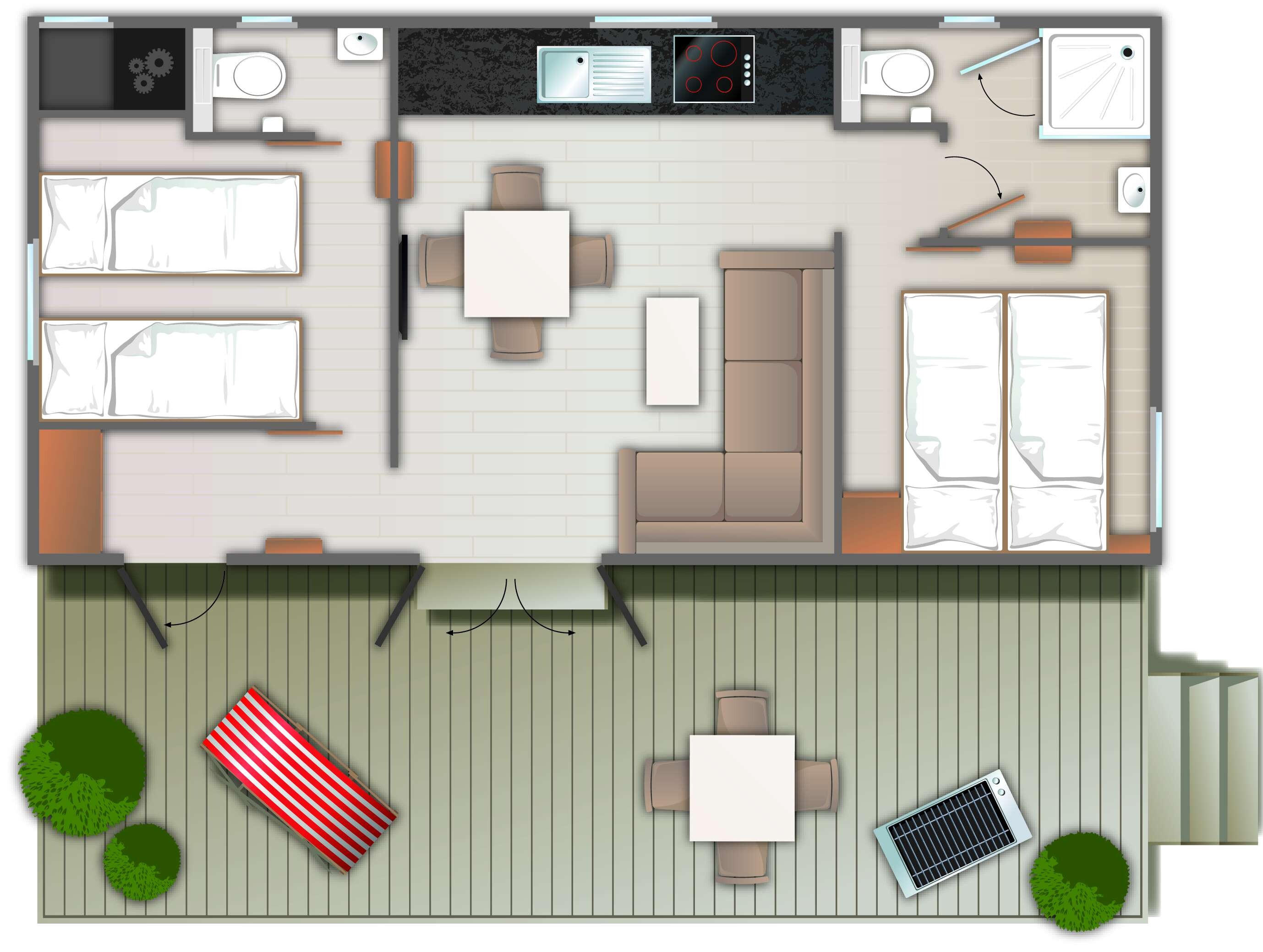 - Træterrasse (jordniveau) eller indbygget træterrasse