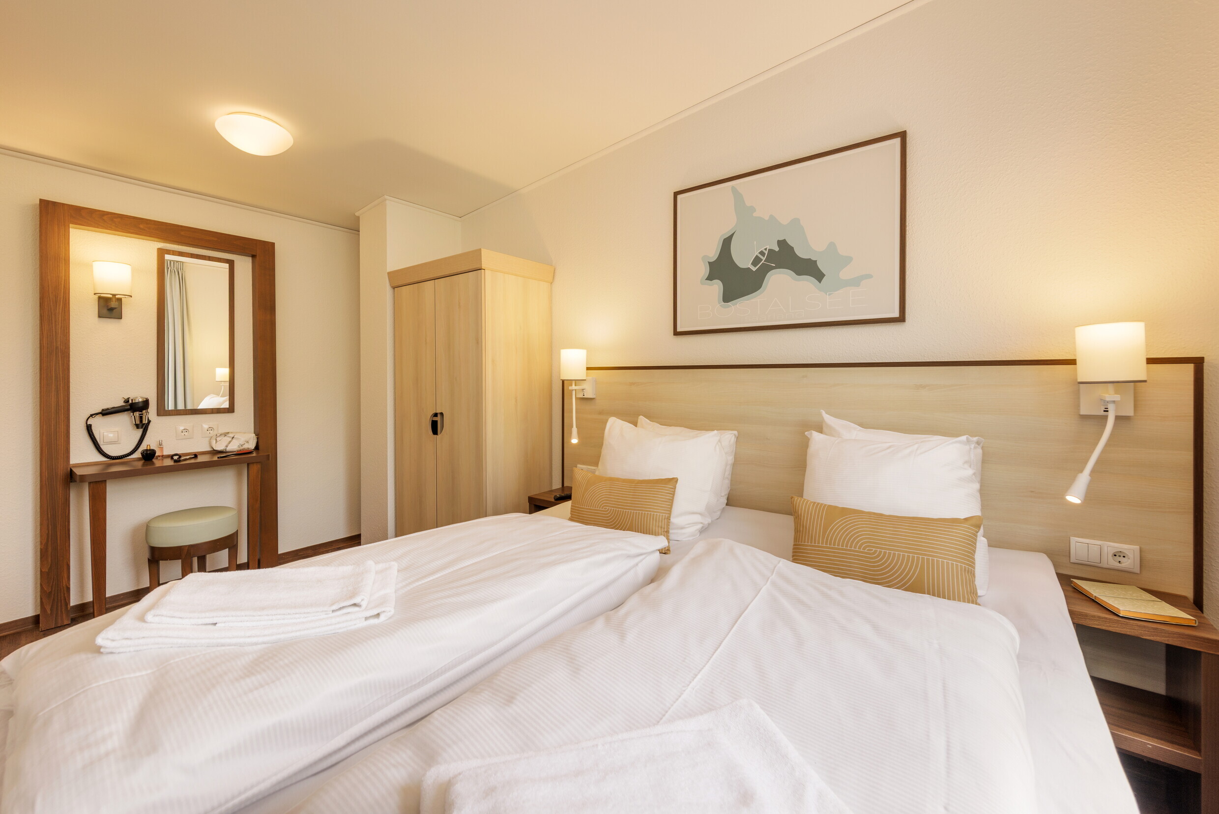 Center Parcs Park Bostalsee er stedet at være, hvis du og din familie har brug for lidt adrenalin, men også ønsker lidt afslapning. Nyd alle vandaktiviteterne på den store vandsportssø med windsurfing, vandcykler, stand-up paddle boarding, sejlads eller bare ved at gå i vandet fra den dejlige sandstrand. Golf for de voksne, minigolf for de små. Ram plet i bueskydning, kast strikes i bowling og scor point i boldspil. Lej cykler, eller prøv en Mini Quad Bike, en firhjulstrækker for børn, på Bostalsee-stien. Prøv klatring, vandring og ridning i naturen. Orry & Friends underholder børnene med højtlæsning eller sjove spil. Børnediskotek, glittertatoveringer, wannabe-aktiviteter eller din egen pony for en stund? Dine børn kan sikkert ikke vente med at komme af sted.