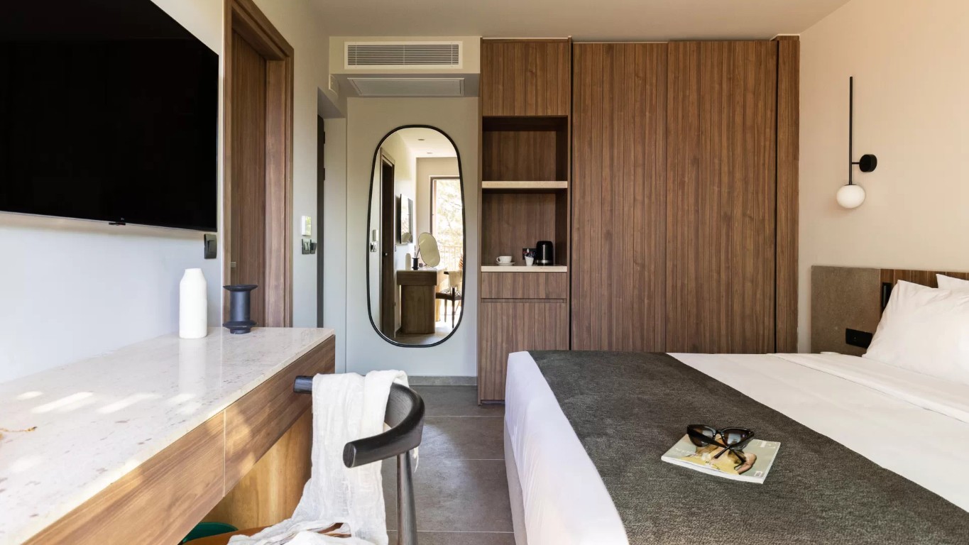 Elios Hill Sun-Kissed Happiness ligger i det livlige Hersonissos, omgivet af havet og de bølgende bakker. Området udstråler en rolig og grøn atmosfære med en træbevokset have, der minder om en kretensisk landsby. Du kan nyde udsigten over kysten og nemt køre til Heraklion eller Agios Nikolaos. På varme dage kan du tage en dukkert i en af de mange pools eller besøge vandlandet med de farverige rutsjebaner. Stranden og forskellige bugter ligger kun en kort køretur væk. En gratis shuttleservice gør det nemt at komme mellem hotellet og det omkringliggende område. Dette er en god base for en familieferie med sol, vandsjov og masser af plads.