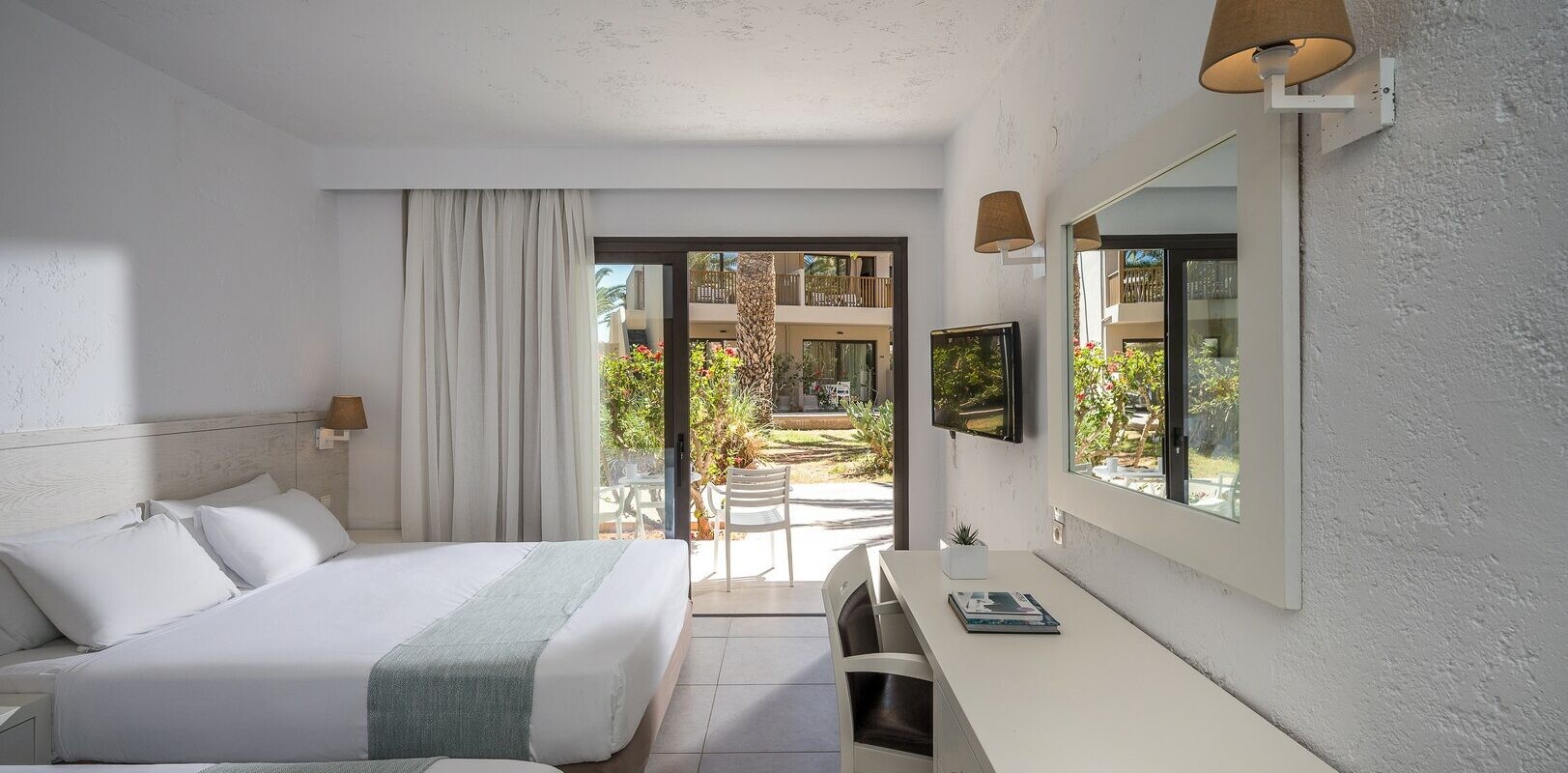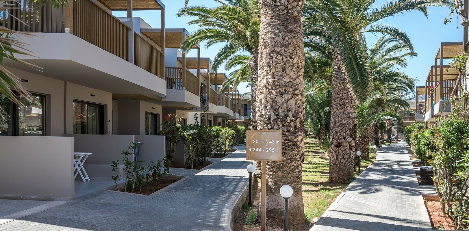 Velkommen til Kreta, på den rolige kyst ved Analipsi nær Chersonissos. Stella Village Seaside Hotel ligger direkte på sin egen sandstrand; du kan slentre fra haven til vandet. Beliggende blandt palmer og farverige planter finder du flere swimmingpools med komfortable liggestole. Atmosfæren er afslappet og familievenlig: lys, moderne og overskuelig. Havet er tæt på, med bjergene som baggrund. Med et børnevenligt vandland, sportsbaner og hyggelige aftener ved poolbaren er dette et sted, hvor familier nemt kan finde deres egen ferierytme.