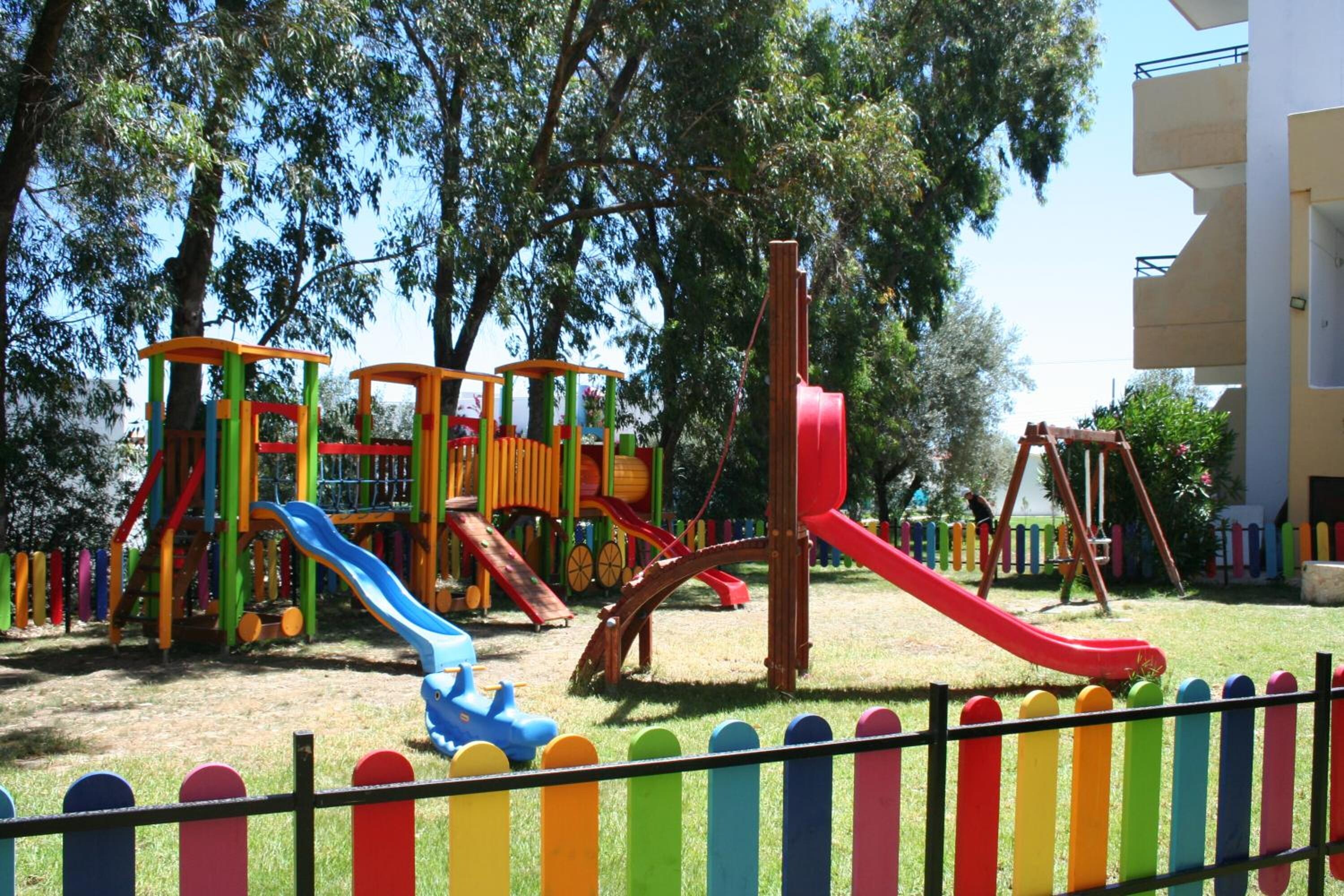 På dette børnevenlige hotel kan forældrene læne sig tilbage og slappe af, mens børnene har det sjovt. Ved den store swimmingpool er der masser af plads til at svømme, lege og af og til tage en dukkert i det friske vand. Der er en separat børnepool, og rundt om vandet er der behagelige liggestole, hvor man kan holde et godt øje med børnene. I haven er der en munter legeplads med farverige redskaber og rutsjebaner, omgivet af græs og høje træer, som giver lidt skygge. Indenfor kan I tage et spil bordtennis eller billard sammen eller gå på opdagelse i spillelokalet. Om aftenen er der regelmæssig underholdning med levende musik eller karaoke.