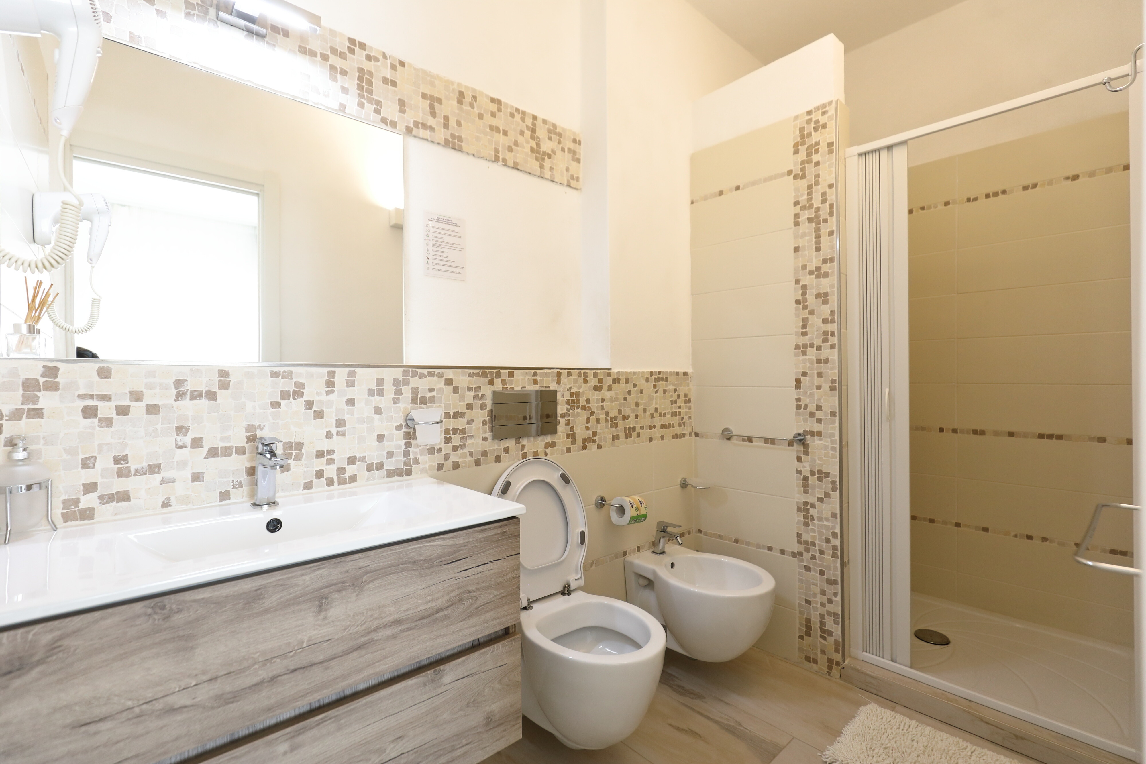 Den fantastiske swimmingpool er hjertet af dette resort, og her kan børnene svømme sikkert rundt, mens forældrene slapper af på de behagelige solsenge. Poolen har endda en dejlig sektion med hydromassage. Den grønne have giver masser af skygge og plads til, at de yngste gæster kan lege. Børnene har det sjovt på legepladsen, de større børn dykker ned i fitnesscentret eller tager ud på havet, og forældrene slår sig ned med en kølig drink ved vandet. Atmosfæren forbliver afslappet, netop fordi resortet ligger et roligt sted væk fra menneskemængder og støj. Og så er der havet: Capo Vaticano-stranden ligger ca. 400 meter væk, Grotticelle-stranden ca. 1,1 kilometer, og en shuttle-service kører til de mest berømte strande langs kysten.