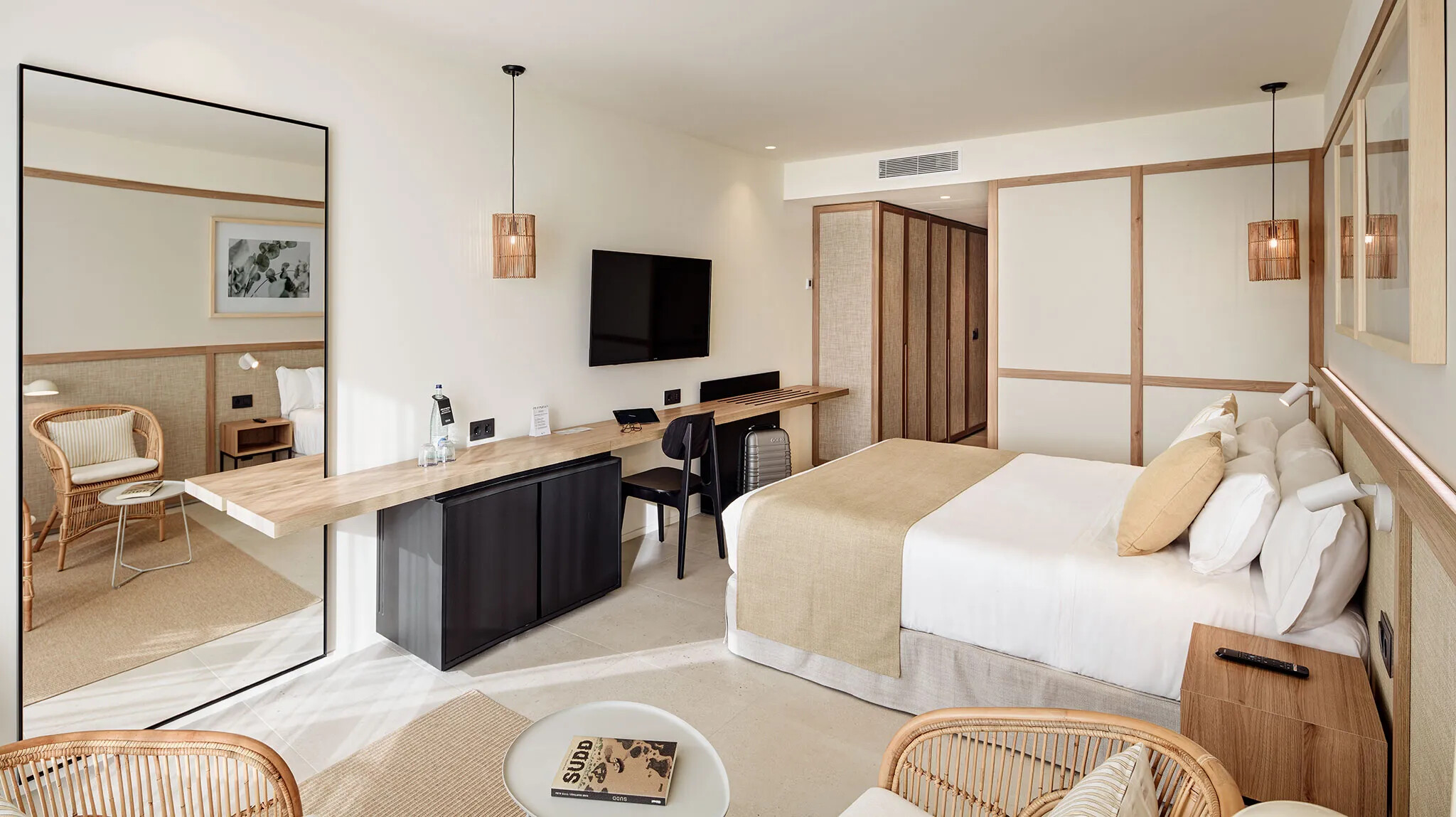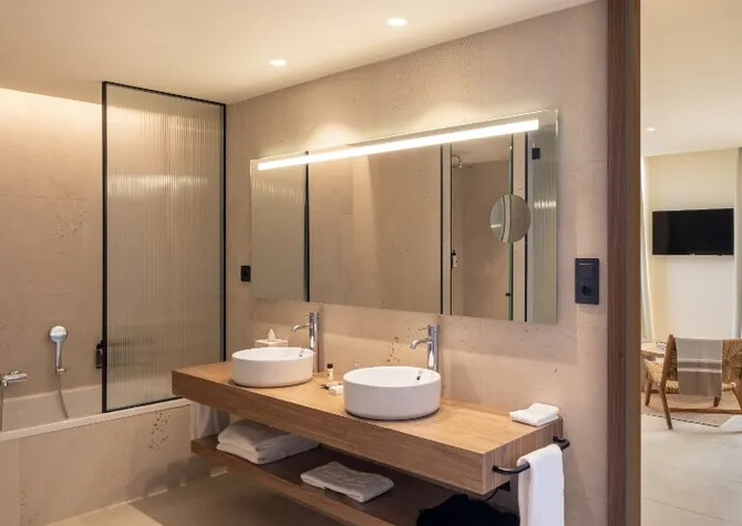 Hotellet byder på flere indbydende poolområder, hvor vandet glitrer i solen, og liggestolene kalder på afslapning. For børnene er der trygge rammer og plads til leg, og de kan deltage i hyggelige børneaktiviteter, mens I snupper en stille stund i solen. Hotellets spa- og wellnessafdeling skaber en blid ro med dæmpet lys og varme nuancer. Her kan I sænke skuldrene og lade tiden gå i et behageligt tempo – ideelt til at genfinde energien. De fælles loungeområder føles luftige og lyse med naturlige materialer og grønne planter, der giver en dejlig afslappet stemning. Værelserne viderefører den rolige linje med bløde farver og et venligt lysindfald, så I får en god pause mellem dagens oplevelser. Træningsområdet er åbent, hvis I trænger til lidt ekstra energi, og bagefter kan hele familien samles til en forfriskende dukkert.