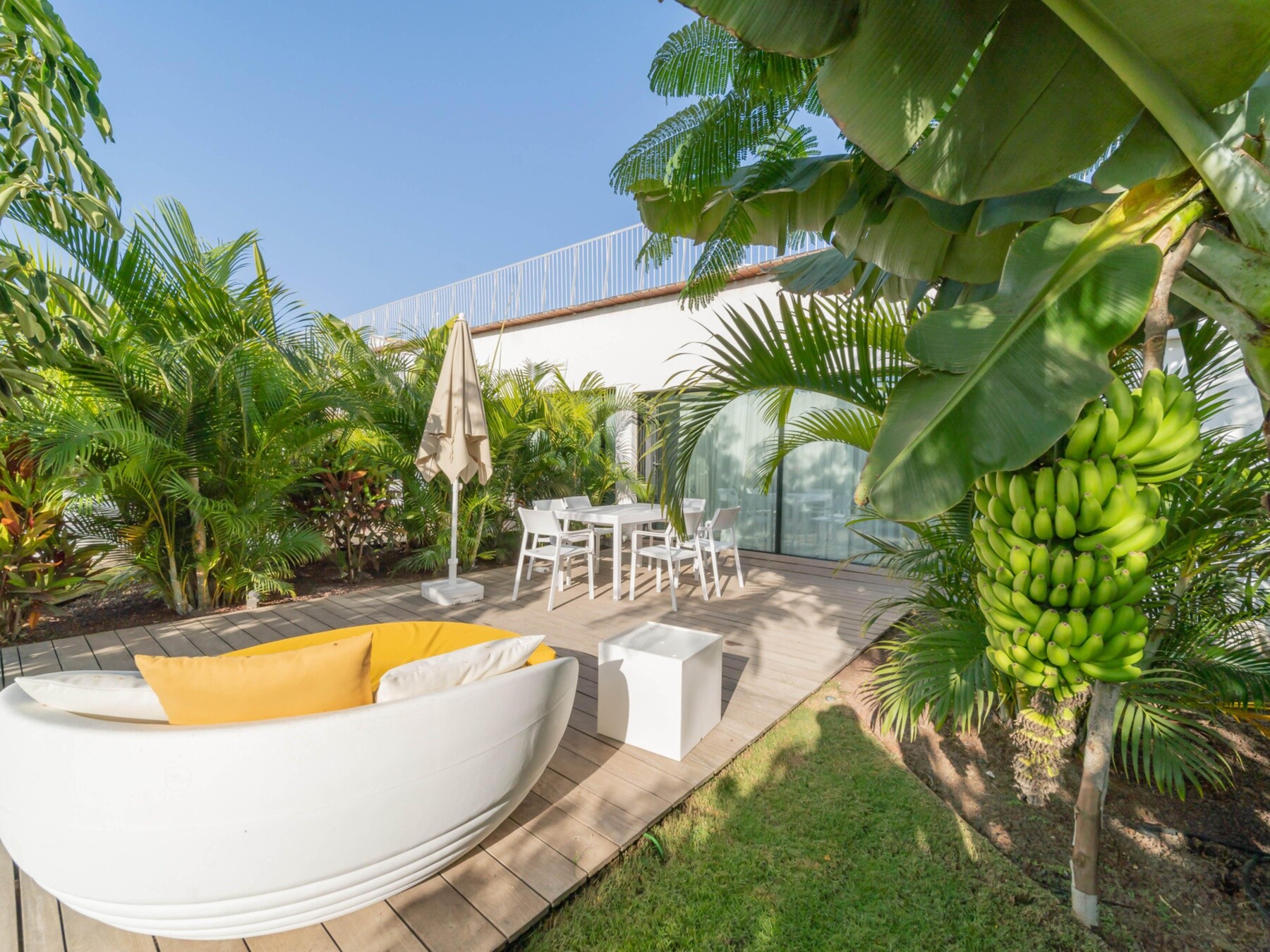 På Cordial Santa Agueda & Perchel Beach Club bor du på et moderne og stilfuldt resort ved kysten nær La Playa de Arguineguín på Gran Canaria. Det charmerende kompleks udstråler den afslappede luksus, man kan forvente af et firestjernet hotel. De velplejede haver har flere udendørs pools, herunder en infinitypool med udsigt over havet, hvor I kan tilbringe timer sammen. Der er også en separat børnepool, så alle kan plaske rundt ubekymret. Strandpromenaden inviterer til en fredelig slentretur med havet, der glitrer i det fjerne.