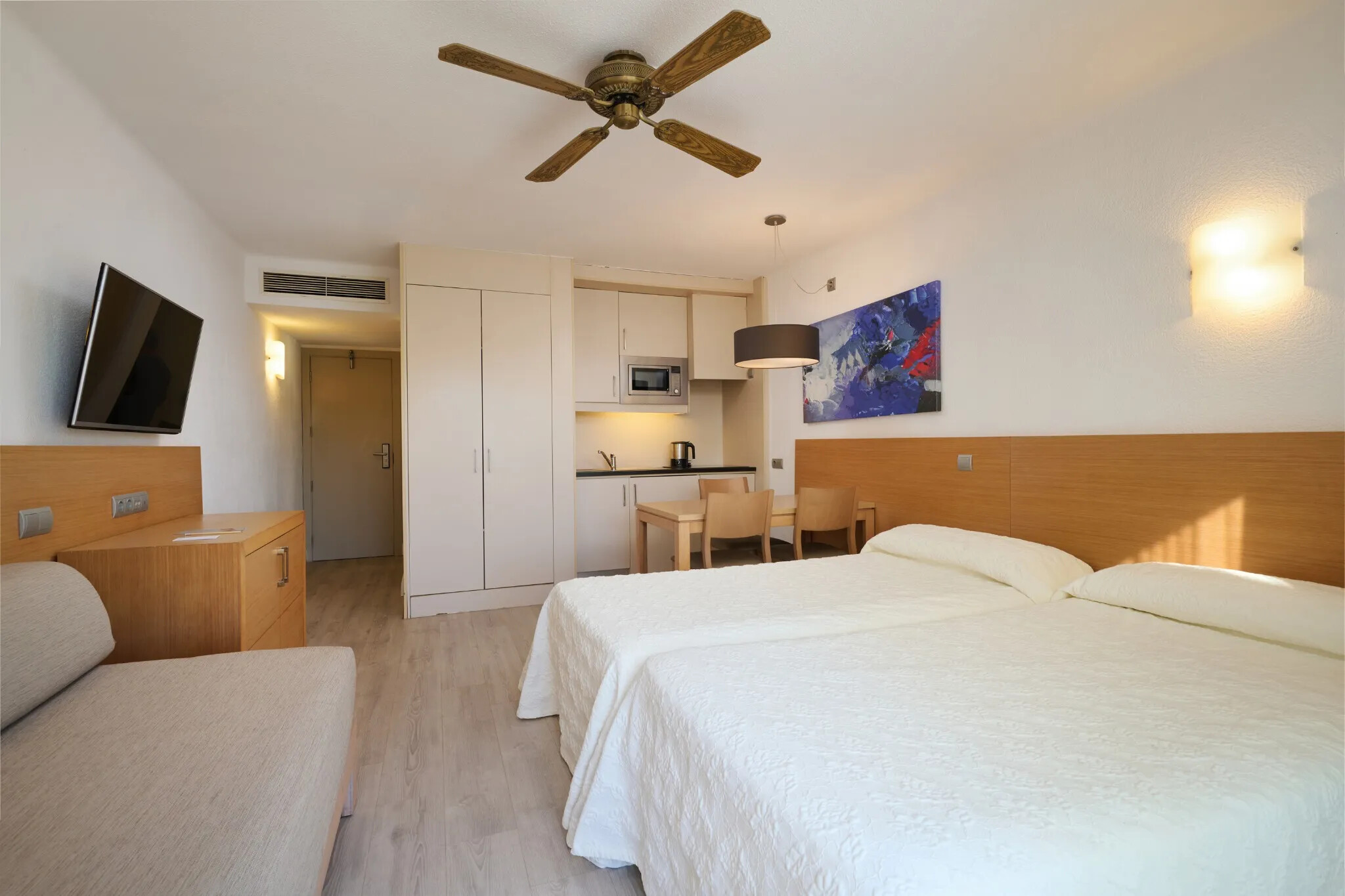 På Club Mediterraneo Hipotels finder familier alt, hvad de behøver for at få en uforglemmelig ferie. De rummelige lejligheder er udstyret med al komfort og har en vidunderlig udsigt over poolen eller havet. Børnene kan more sig i miniklubben, mens forældrene nyder freden og roen ved poolen. Resortet er designet til at tilbyde både afslapning og sjov. Nærheden til stranden gør det muligt at tage spontane ture til havet, hvor de små kan lege i sandet, og forældrene kan nyde solen. Den venlige atmosfære og de mange aktiviteter gør dette hotel til et ideelt sted for en vellykket familieferie.